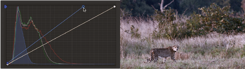 - Lift 의 왼쪽 위에 있는 Pick Black Point 도구를 선택하고 치타의 손에 있는 검은색 얼룩을 클릭. 그림자와 검은색이 진해짐