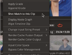 - 클립 11이 선택된 상태에서 10 번 클립을 우클릭하고 "Shot Match to this Clip"을 선택하면 11번 클립을 10번 클립에 맞춰 조정해줌(약간 시간 걸림)
