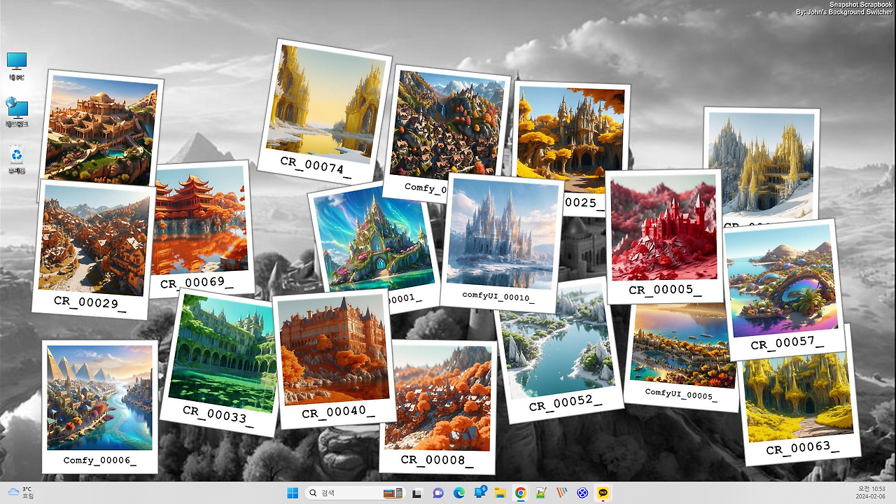 얼마전 스테이블 디퓨전을 사용해 판타지 바탕화면 월 페이퍼를 생성하는 방법을 알려드렸습니다. 3가지 스타일(중세/이집트/중국), 4가지 장소(마을/도시/궁전/성),4가지 계절(봄/여름/가을/겨울), 7가지 색깔 등을 조합해서 거의 무한정의 판타지 스타일의 바탕화면을 만들어주는 ComfyUI 워크플로입니다. 그런데, 한가지 아쉬운 점이 있었습니다. 요즘 모니터 가격도 싸졌고 그래픽 카드도 좋아져서 왠만하면 멀티 모니터를 사용할 수 있는데, 바탕화면 슬라이드 쇼 설정이 다중 모니터를 지원하지 않기 때문입니다. 즉, 윈도11 기본 바탕화면 설정만으로는 모든 바탕화면을 매번 동일하게 바꾸거나, 모니터별로 다른 바탕화면 이미지를 지정하는 방법이 불가능합니다. 저의 경우엔 모니터를 2개 사용하는데, 한쪽은 고정되어..