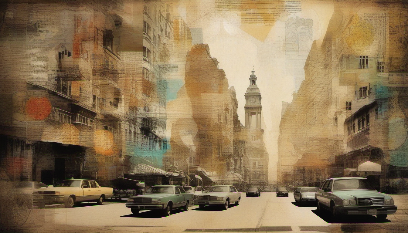 프롬프트: collage style {prompt} . mixed media, layered, textural, detailed, artistic