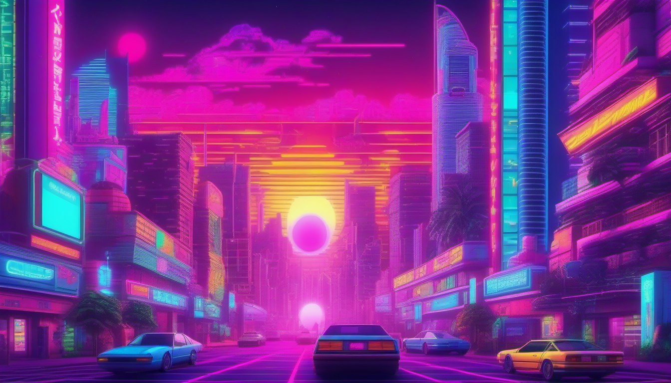 프롬프트: neonpunk style {prompt} . cyberpunk, vaporwave, neon, vibes, vibrant, stunningly beautiful, crisp, detailed, sleek, ultramodern, magenta highlights, dark purple shadows, high contrast, cinematic, ultra detailed, intricate, professional