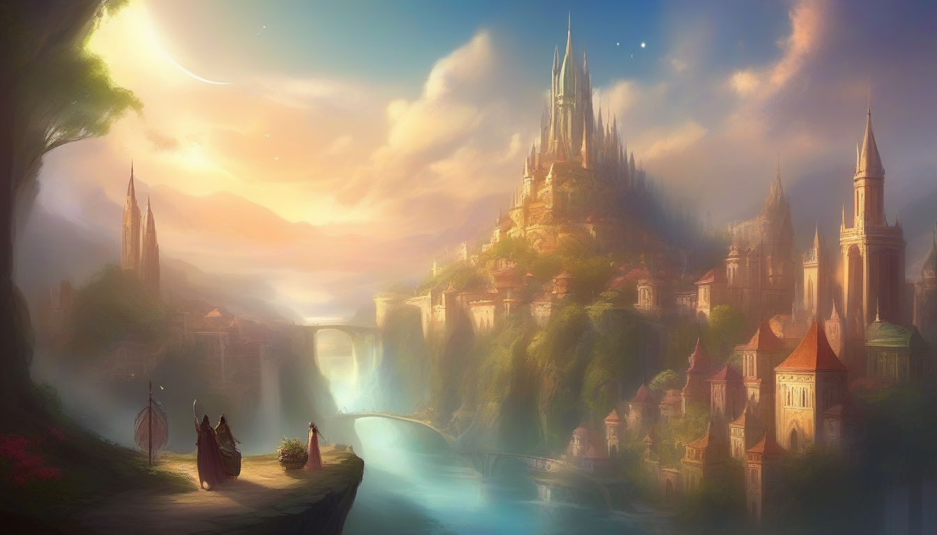 프롬프트: ethereal fantasy concept art of {prompt} . magnificent, celestial, ethereal, painterly, epic, majestic, magical, fantasy art, cover art, dreamy