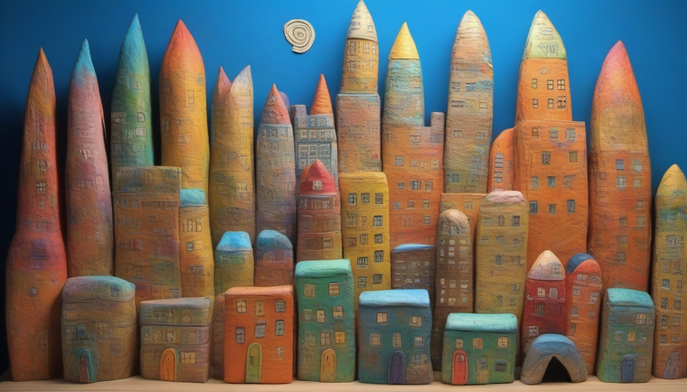 프롬프트: paper mache representation of {prompt} . 3D, sculptural, textured, handmade, vibrant, fun