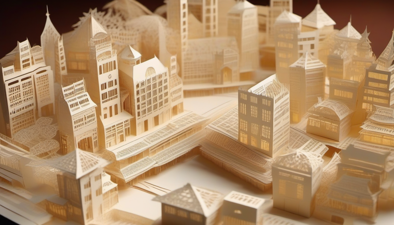 프롬프트: kirigami representation of {prompt} . 3D, paper folding, paper cutting, Japanese, intricate, symmetrical, precision, clean lines