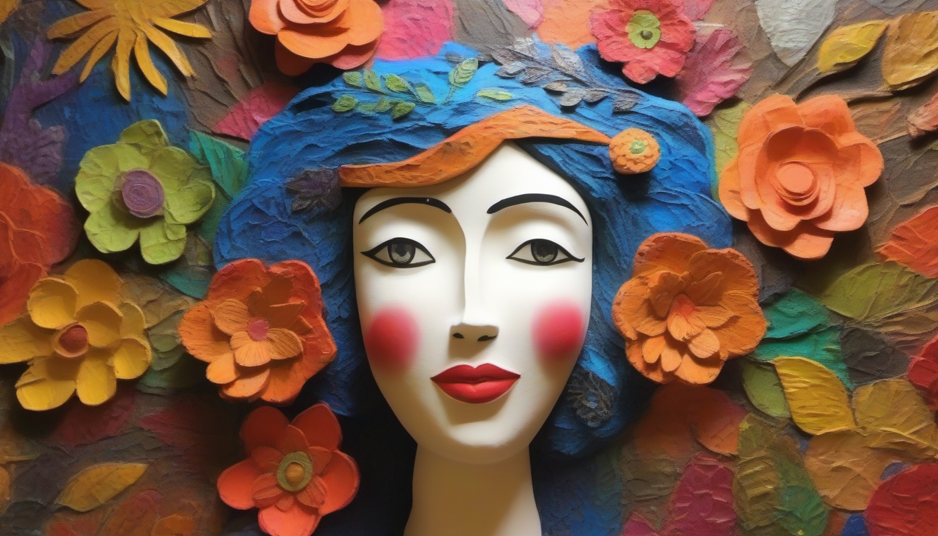 프롬프트: paper mache representation of {prompt} . 3D, sculptural, textured, handmade, vibrant, fun