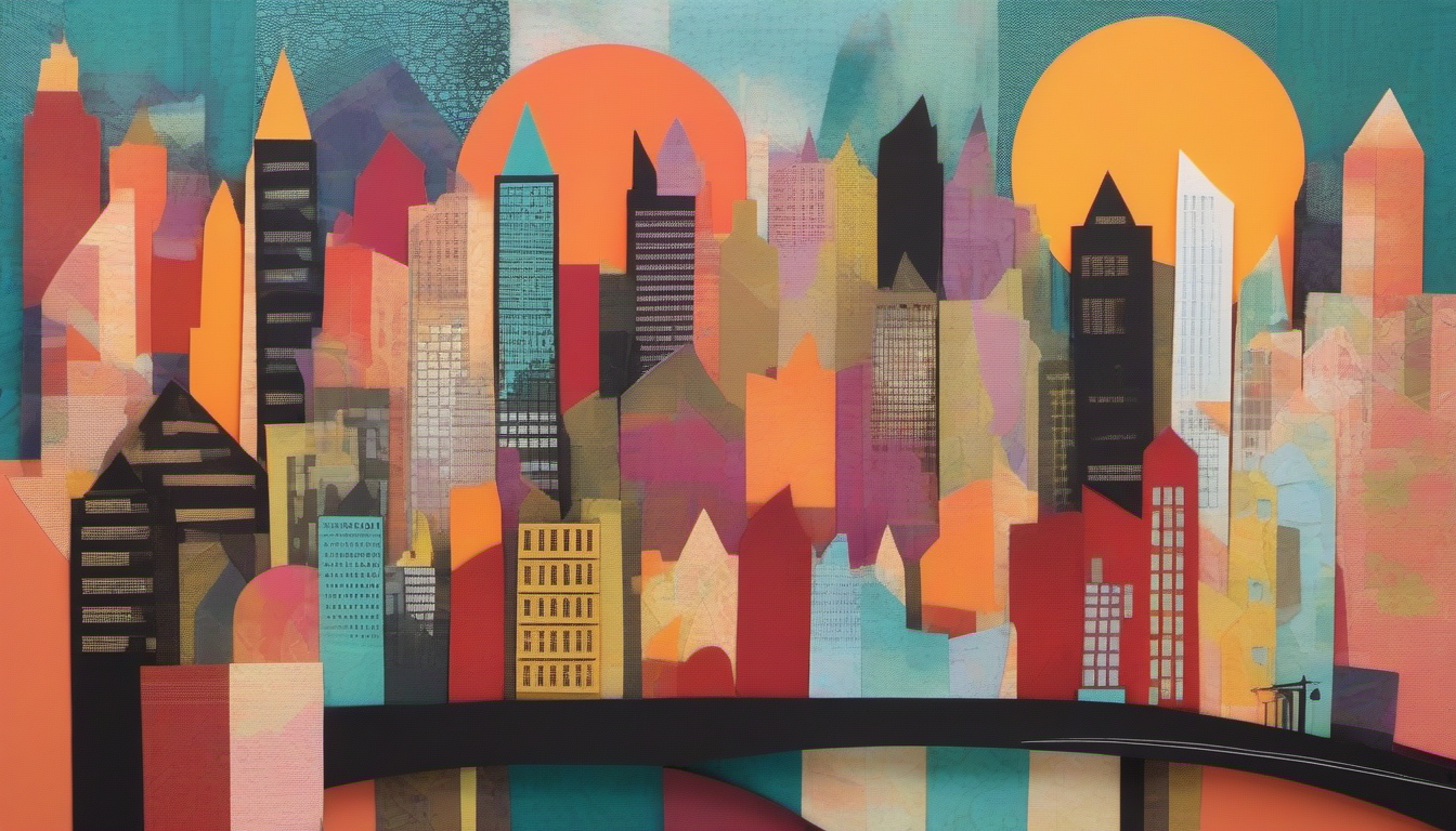 프롬프트: collage style {prompt} . mixed media, layered, textural, detailed, artistic