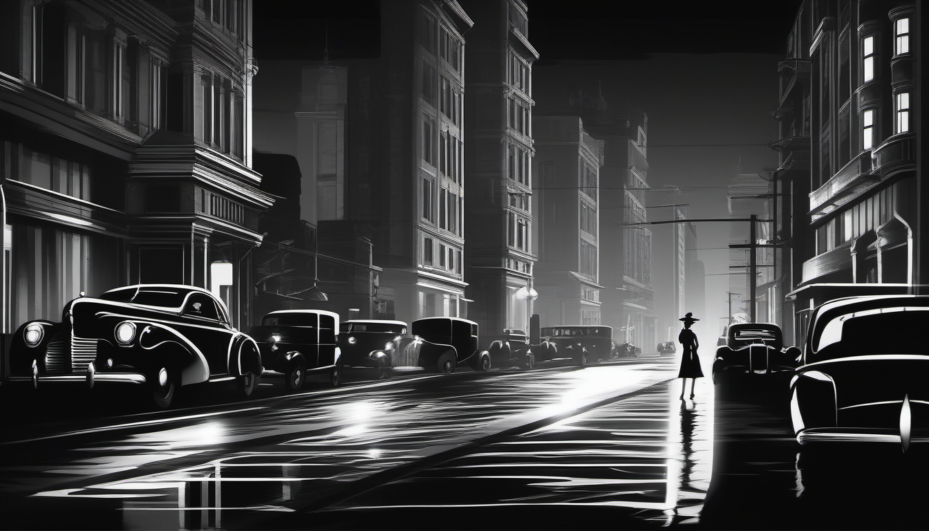 프롬프트: film noir style {prompt} . monochrome, high contrast, dramatic shadows, 1940s style, mysterious, cinematicugly