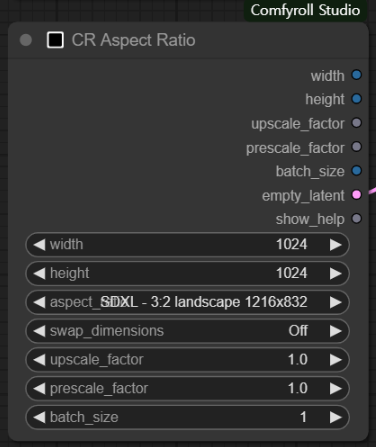 또한, 이미지 크기를 설정하기 쉽도록 [CR Aspect Ratio] 노드를 사용했습니다.