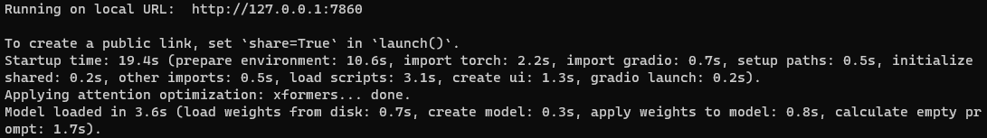 다음으로 현재 실행중인 AUTOMATIC1111을 완전히 꺼 준뒤, 다시 webui-user.bat 파일을 실행시키면 여러가지 평소에 안보이던 메시지가 나온 뒤에 모델이 불러들이는 것까지 실행되면 정상적으로 업그레이드 된 것입니다.
