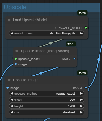 이 워크플로는 Upscale 그룹에서 업스케일을 실행합니다. 원하시면 업스케일 모델을 바꿀 수 있으며, 이미지 크기도 변경할 수 있습니다(단, 종횡비를 맞추셔야 합니다). 업스케일에 관한 내용은 여기를 읽어보시기 바랍니다.