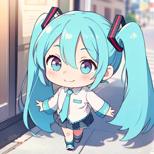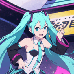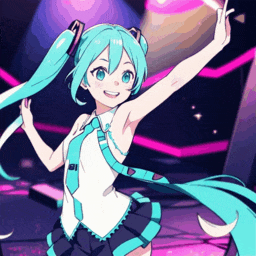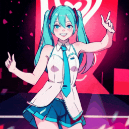 프롬프트: 1girl, hatsune miku, light smile, dancing, onstage, heart