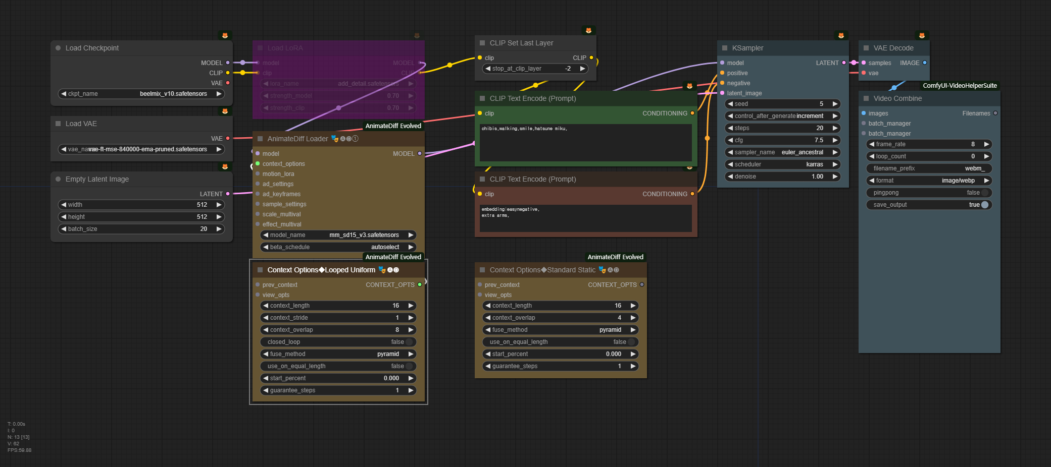 - Context Options - 루프 버전의 경우 [Context Options - Looped Uniform]노드를, 아닐 경우에는 [ContextOptions - Standard Static] 노드를 사용한다.