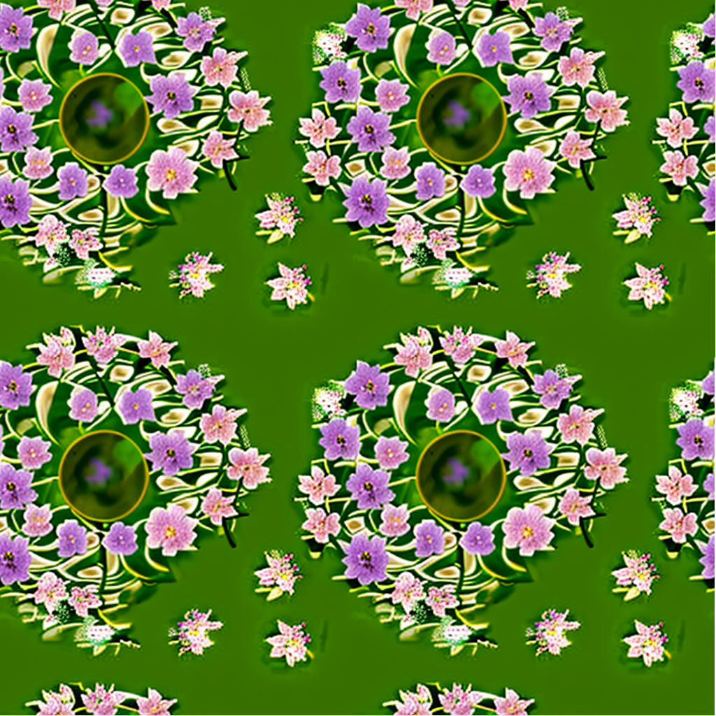 아래는 "flowers, pond, butterfly, pastel tone, by Claude Monet"로 프롬프트를 입력하고 Tiling 옵션을 켠 상태로 생성한 이미지 입니다. 오른쪽은 이 그림을 2x2로 붙여본 것입니다.