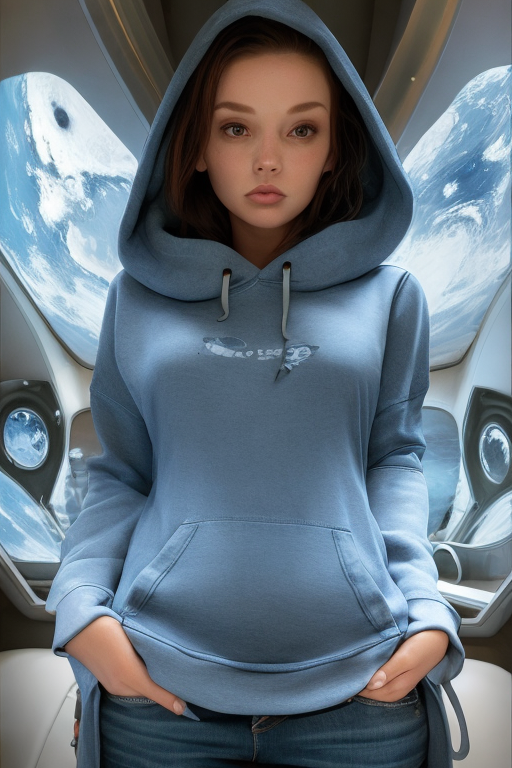 예를 들어, 동일한 설정과 동일한 프롬프트(woman, hoodies, jeans in a spaceship with windows overlooking a planet)를 사용하여(씨드 번호는 각각 3869045693,793903308) 아래와 같은 2개의 이미지를 얻었습니다.