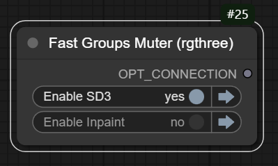 생성된 이미지 중 일부만 마음에 안든다면, 인페인트를 이용할 수 있습니다. 먼저 [Fast Group Muter] 노드를 아래와 같이 설정해줍니다.