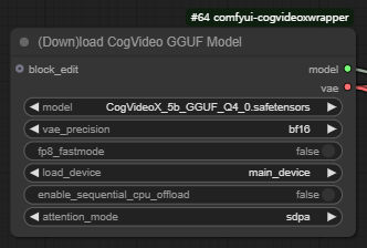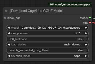 참고로 txt2vid 워크플로와 이 img2vid에서 모델을 다운로드 받는 노드는 둘다 [(Down)load CogVideo GGUF model] 노드를 사용하지만, 다운로드 받은 모델을 바꿔주셔야 합니다.