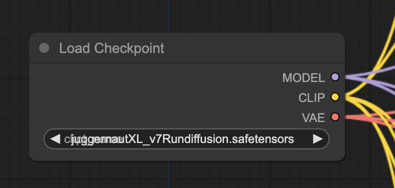 맨 좌측의 [Load Checkpoint] 모델에서는 아래와 같이 JuggernautXL 모델을 선택합니다. 만약 안보이면 화면을 새로고침하시면 됩니다.