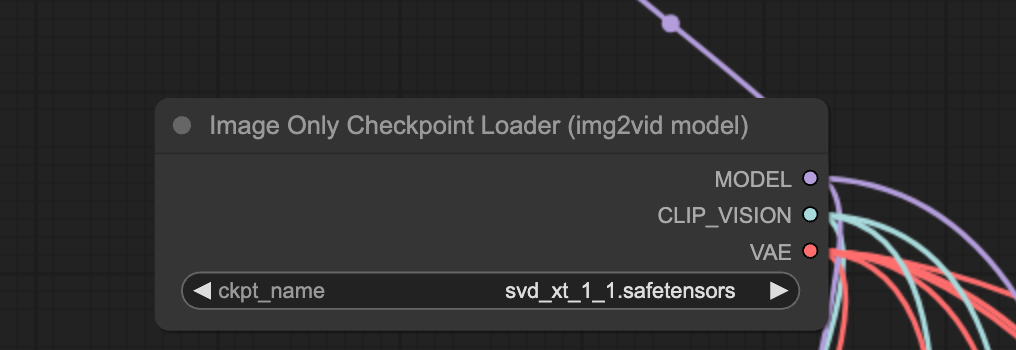 SVD 모델은 가운데 위에 있는 [Image Only Checkpoint Loader] 노드에서 선택해줍니다.