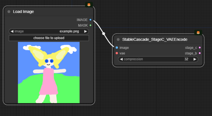 아래는 이미지를 인코딩하여 스테이지 C에 전달함으로써, 기본적인 image-to-image 를 수행하는 워크플로의 예입니다.