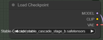 그리고 여기에도 [Load Checkpoint] 노드가 하나 더 있는데, 당연히 "stable_cascade_stage_b.safetensors" 모델을 불러들이고, 모델은 [KSampler]로 연결됩니다.