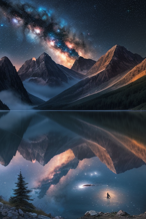 아래는 이렇게 해서 생성한 결과입니다(중간 이미지의 프롬프트에는 "milkyway"를 하나 더 추가했습니다). 보시는 것처럼 거의 동일한 풍경이라는 것을 알 수 있습니다.