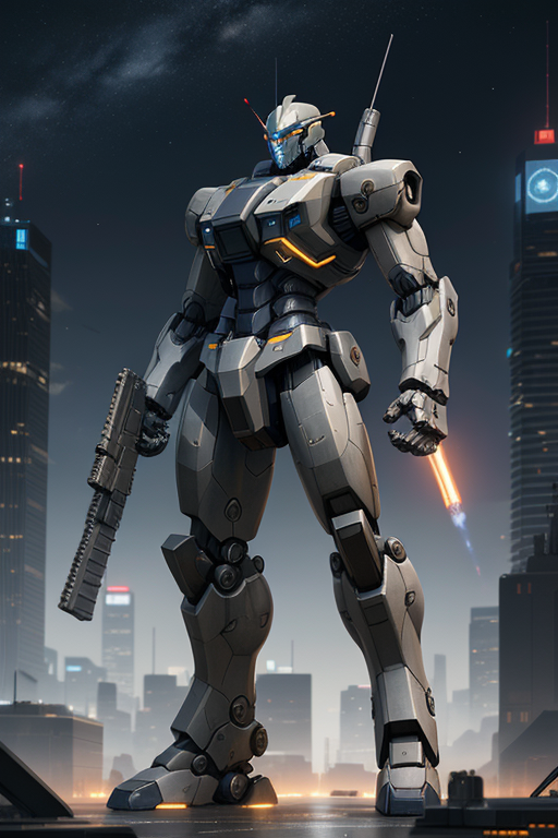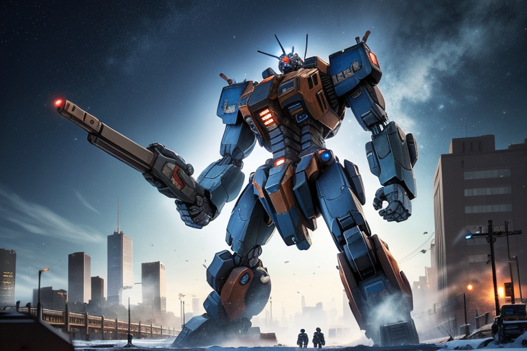 그래서 이렇게 생성을 하면 (잡음 제거 강도는 0.7) 아래와 같이 건담스타일 로봇이 생성됩니다.