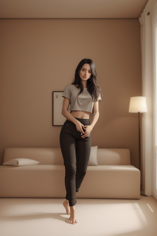 이번엔 아래 왼쪽의 여성 이미지를 입력하고 그냥 [Queue Prompt] 를 눌렀을 때의 결과입니다(아래 중간). 보시는 것처럼 아무 프롬프트를 조정하지 않았음에도 왼쪽 이미지를 바탕으로 새로운 스타일의 이미지를 생성했습니다. 여성의 자세, 소파, 그리고 스텐드의 위치를 보면 상당히 원 이미지를 반영했음을 알 수 있습니다. 참고로 맨 오른쪽은 잡음제거 강도(denoise)를 0.3으로 낮게 잡았을 때의 결과로 원본 이미지와 거의 비슷함을 알 수 있습니다.