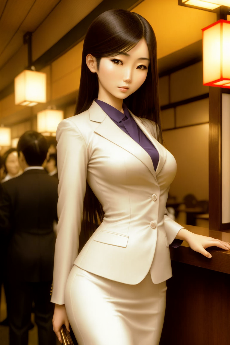 아래는 ratio를 달리하면서 두개의 모델을 합쳐서 생성한 결과입니다. 프롬프트는 "beautiful japanese woman in a business dress, slender, standing in a japanese bar" 입니다.