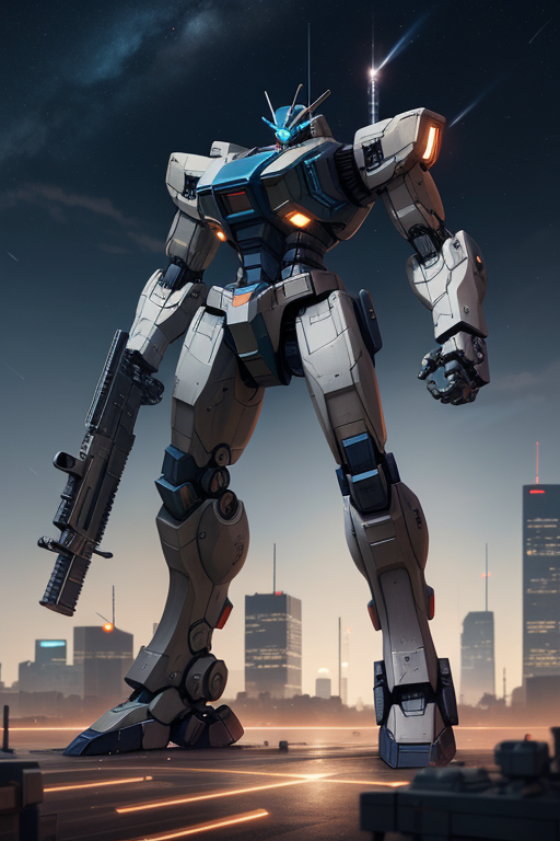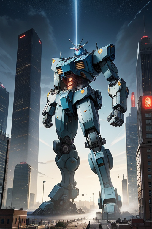 그래서 이렇게 생성을 하면 (잡음 제거 강도는 0.7) 아래와 같이 건담스타일 로봇이 생성됩니다.