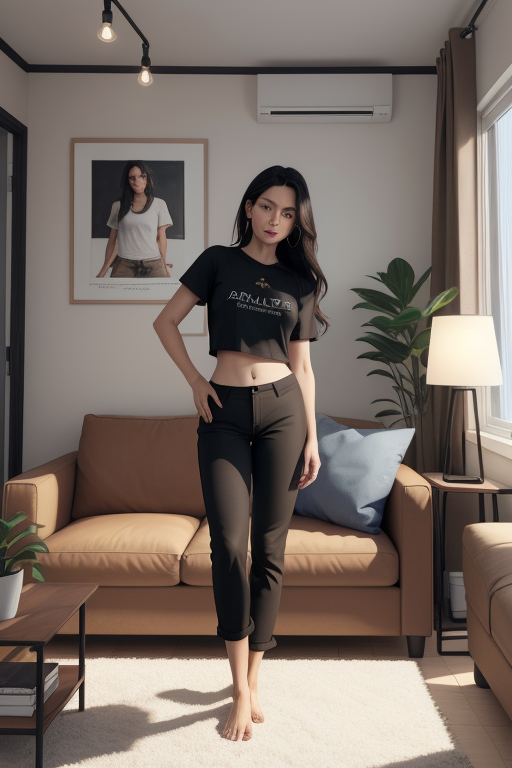 이번엔 아래 왼쪽의 여성 이미지를 입력하고 그냥 [Queue Prompt] 를 눌렀을 때의 결과입니다(아래 중간). 보시는 것처럼 아무 프롬프트를 조정하지 않았음에도 왼쪽 이미지를 바탕으로 새로운 스타일의 이미지를 생성했습니다. 여성의 자세, 소파, 그리고 스텐드의 위치를 보면 상당히 원 이미지를 반영했음을 알 수 있습니다. 참고로 맨 오른쪽은 잡음제거 강도(denoise)를 0.3으로 낮게 잡았을 때의 결과로 원본 이미지와 거의 비슷함을 알 수 있습니다.