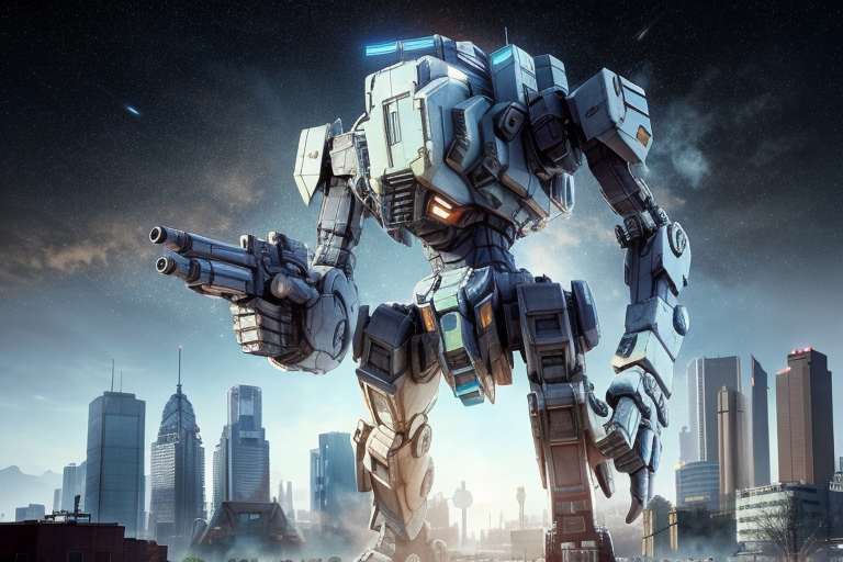 아래는 이 워크플로를 그대로 사용해 생성한 이미지입니다. 디테일은 다르지만 전체적으로 비슷한 형태의 거대 전투 로봇이 생성되었습니다. 이렇게 비슷한 이미지가 생성된 것은 잡음제거 강도(denoise)를 0.3으로 상당히 낮게 설정하였기 때문입니다.