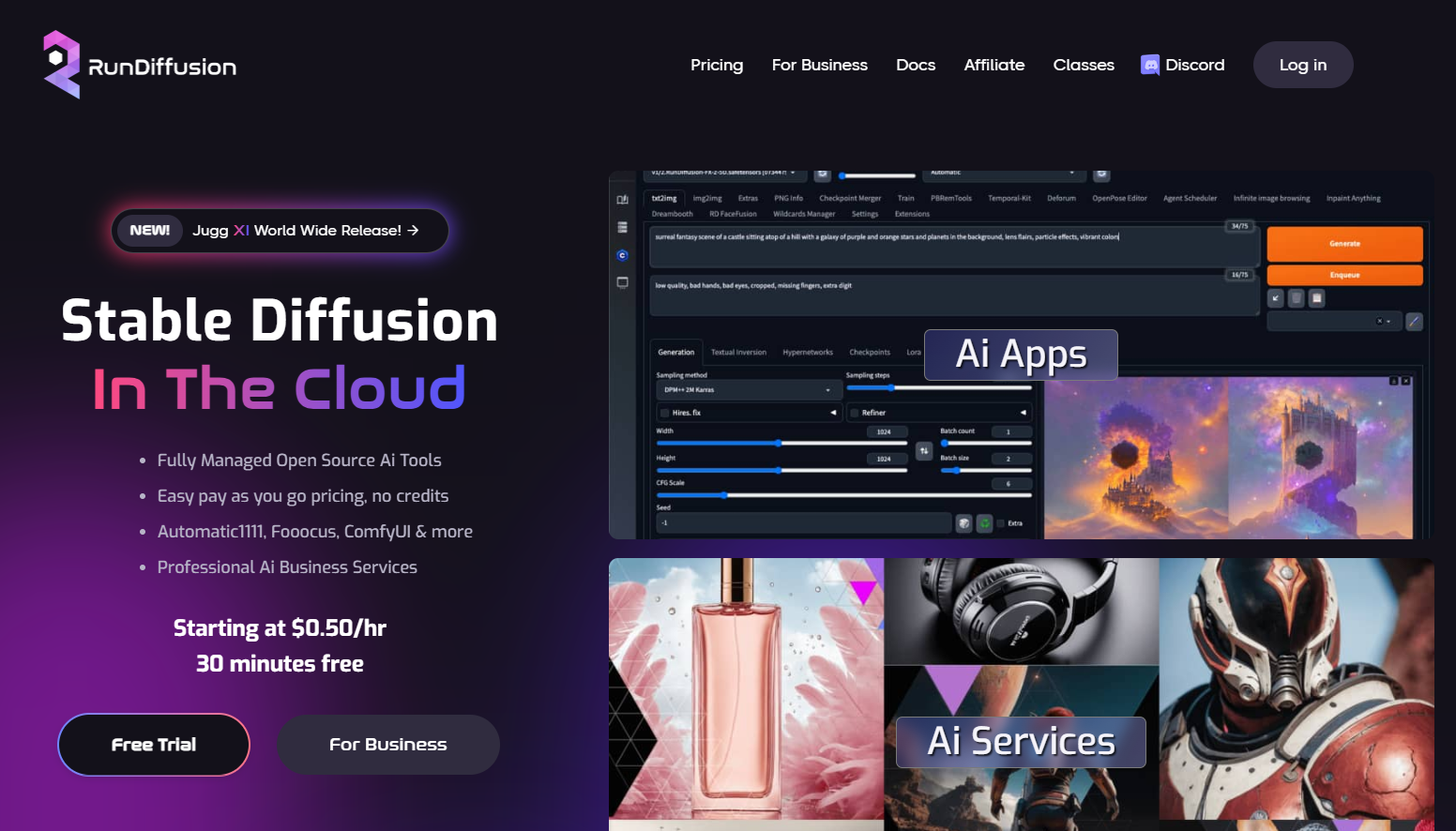 - 저렴한 비용 : 강력한 GPU는 수백만원, 전문가용 모델의 경우 수천만원이 소요되지만, RunDiffusion을 사용하면 시간당 몇 천원 수준에서 이러한 GPU를 사용할 수 있습니다.