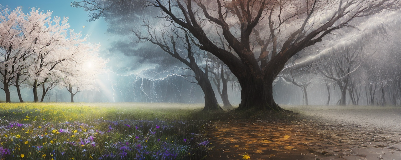 AUTOMATIC1111의 구역분할 프롬프트 사용법에는 여러가지 활용법이 많이 나와있지만, 여기서는 구역 프롬프트를 창조적으로 사용하기 에 있는 이미지, 즉 봄 여름 가을 겨울이 한꺼번에 들어 있는 이미지를 만들어보겠습니다. 아래가 워크플로입니다. 이 프롬프트도 ComfyUI area composition 예제에서 우측에 있는 Hires. Fix 부분은 삭제했습니다. 이걸 넣으니 봄 여름 가을 겨울이 뭉그러지게 되어서요.