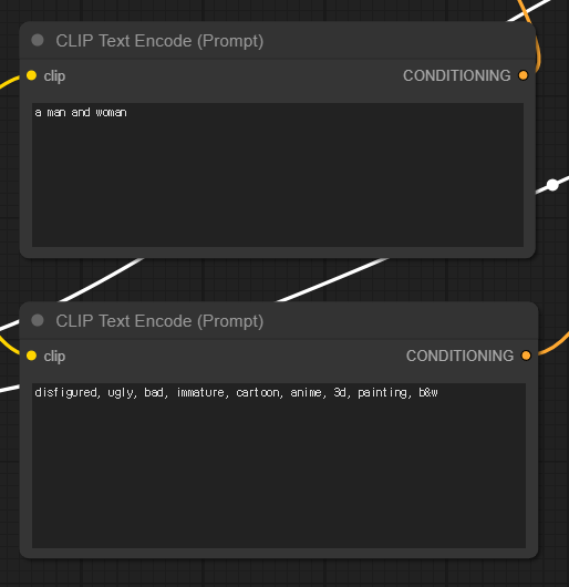 그리고, 이 부분 아래로도 프롬프트를 입력하는 노드가 있는데, 여기는 공통 프롬프트를 넣는 곳입니다.