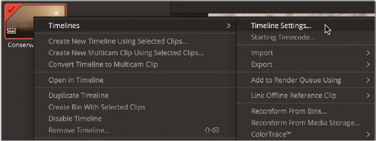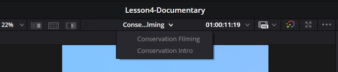 - Master bin의 TIMELINES 에서 Conservation Intro 타임라인을 더블클릭해서 선택