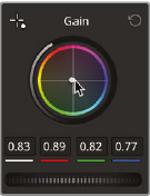 - Gain 영역에서 마스터 휠을 0.83으로 내림. 중앙점을 잡고 주황색쪽으로 약간 끌어서 따뜻한 색으로