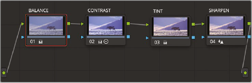 - 우클릭 후 Node Label 선택후 이름 지정 (BALANCE, CONTRAST, TINT, SHARPEN)