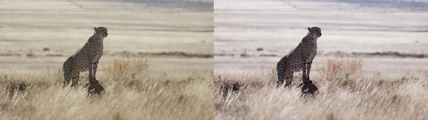 - Lift 의 왼쪽 위에 있는 Pick Black Point 도구를 선택하고 치타의 손에 있는 검은색 얼룩을 클릭. 그림자와 검은색이 진해짐