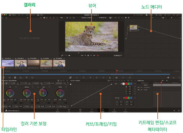 DaVinchi Resolve를 사용하면 30년 이상의 색 보정 경험을 배울 수 있습니다. Black Magic Design은 영화, 비디오 및 디지털 소스에서 얻은 시각적 이미지를 예술적으로 향상시키기 위해, 특별히 설계된 색 보정 하드웨어 및 소프트웨어를 개발해 왔습니다. 그 결과 DaVinchi Resolve 에는 여러분의 프로그램에서 클립의 모양을 조정하거나, 전체 타임라인에서 색 조정을 관리하기 위한 놀랍도록 정교하며 효율적인 도구들이 포함되어 있습니다.