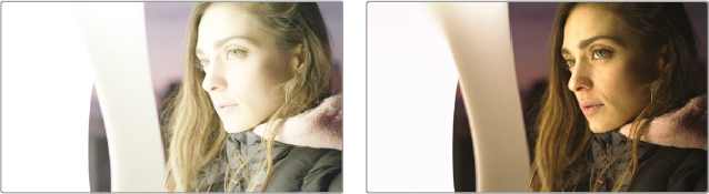 물론 상황에 따라서는 색상과 노출에 더 심각한 문제가 있는 영상을 수정해야 할 수도 있습니다. 이러한 경우에도 이미지를 훨씬 더 복잡하게 변경할 수 있는 도구가 존재하기는 하지만, 결과물의 품질은 소스 미디어의 품질과 '관용도(latitude)'에 따라 크게 달라집니다. 예를 들어, 블랙매직의 URSA 미니 카메라는 raw 포맷 또는 최소 압축 미디어 포맷으로 상당한 양의 이미지 데이터를 기록하므로, 일반 카메라의 데이터로는 불가능한 극단적인 경우에도 보정을 할 수 있습니다. DaVinci Resolve의 컬러 페이지를 사용하면 어떠한 경우에도 다양한 이미지 처리 기법을 이용해, 더 나은 이미지를 얻을 수 있습니다.
