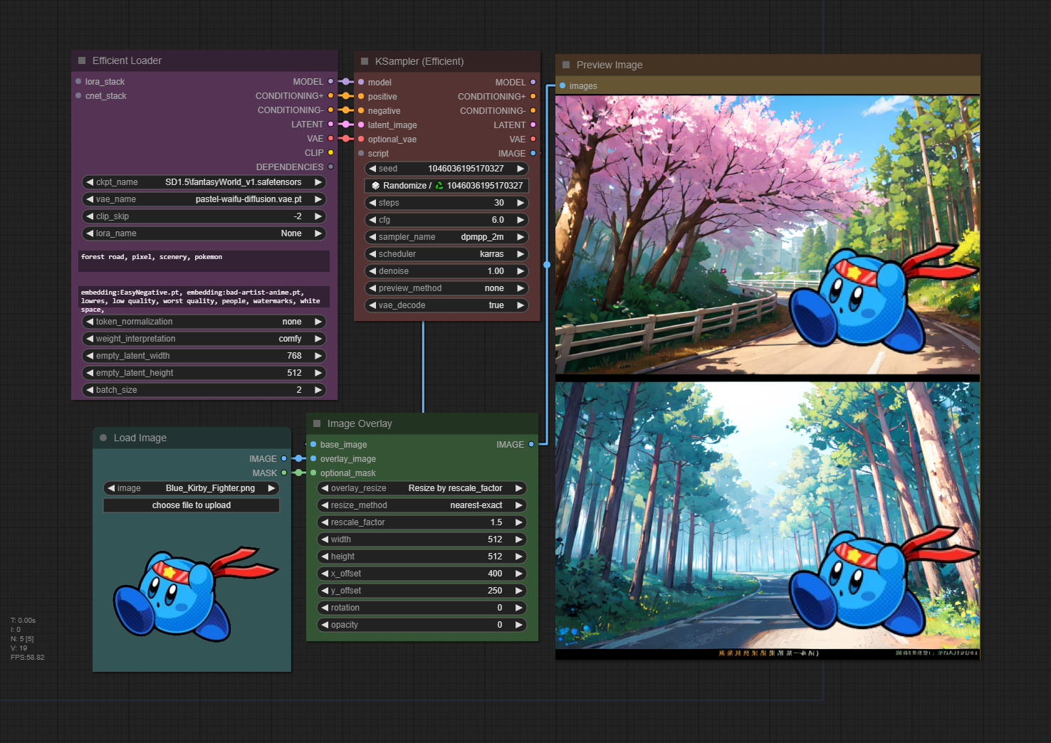 결론적으로, SD1.5를 사용할 때에는 [Efficient Loader] 노드와 [KSampler (Efficient)] 노드를 사용하고, SDXL을 사용할 때에는 [Eff. Loader SDXL]과 [KSampler SDXL (Eff)] 노드를 연결해서 사용하면 제일 편리합니다.