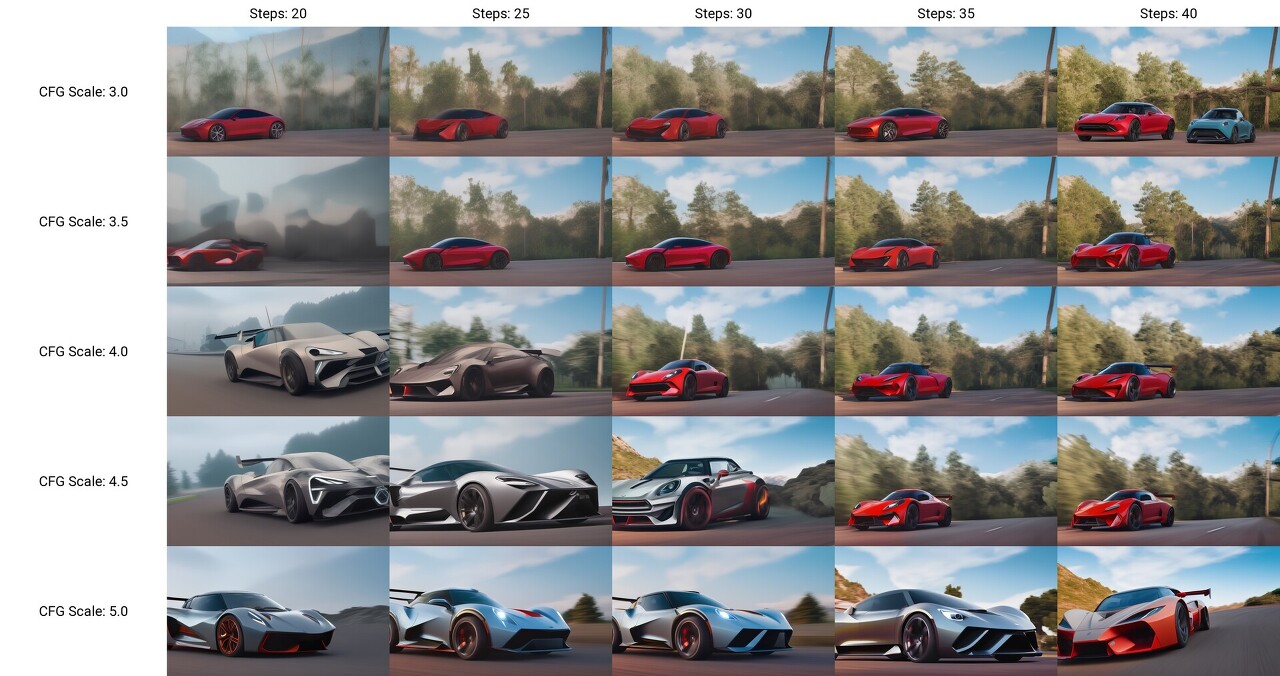 예를 들어, 아래는 인터넷에서 가져온 그림인데, 샘플링 단계수와 CFG 척도를 변경하면서 어떤 효과가 있는지 비교해 본 그림입니다. 이런 그림이 XY Plot을 사용해 생성한 것입니다.