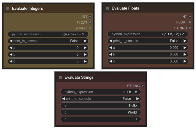 간단한 파이썬 수식을 작성할 수 있는 노드입니다. 아래와 같이 3가지 종류가 있습니다.
