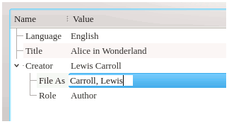 새로 추가된 File-As 속성에 Carroll, Lewis를 입력한다.