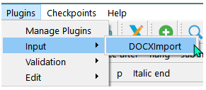 이 플러그인을 실행하려면, Plugins->Input->DOCXImport 메뉴를 클릭하면 된다.