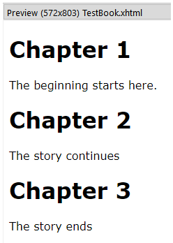 일반적으로 HTML 파일을 불러들이면, 모든 텍스트와 장이 하나의 파일로 들어가게 된다. 이것도 물론 허용되지만, EPUB에서는 각장을 별도의 파일로 넣는 것이 일반적이다. 기기에 따라서는 파일 크기의 제한이 있을 수 있으며, 파일이 작으면 표시도 빨라지고 편집도 쉬워진다.