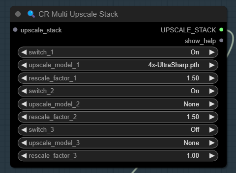 [CR Multi Upscale Stack] 노드에서는 AI 확대기(upscaler) 모델을 선택합니다. 저는 4x-UltraSharp 모델을 선택했습니다. 원하시면 여러가지 Upscaler를 중복해서 사용하셔도 됩니다. 없으시면 다운로드 받은 후 ComfyUI\models\upscale_models 폴더에 넣어주시면 됩니다. AUTOMATIC1111과 모델을 공유하실 경우엔 여기를 보세요) 다 받은 후에는 화면을 새로고침(F5)하면 목록에 나타납니다.