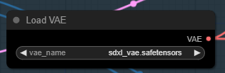 다음으로 [Load VAE] 노드에서 VAE 파일을 선택합니다. 저는 sdxl_vae.safetensors를 사용했습니다. 없으시면 다운로드 받은 후 ComfyUI\models\vae 폴더에 넣어주시면 됩니다. AUTOMATIC1111과 모델을 공유하실 경우엔 여기를 보세요) 다 받은 후에는 화면을 새로고침(F5)하면 목록에 나타납니다.