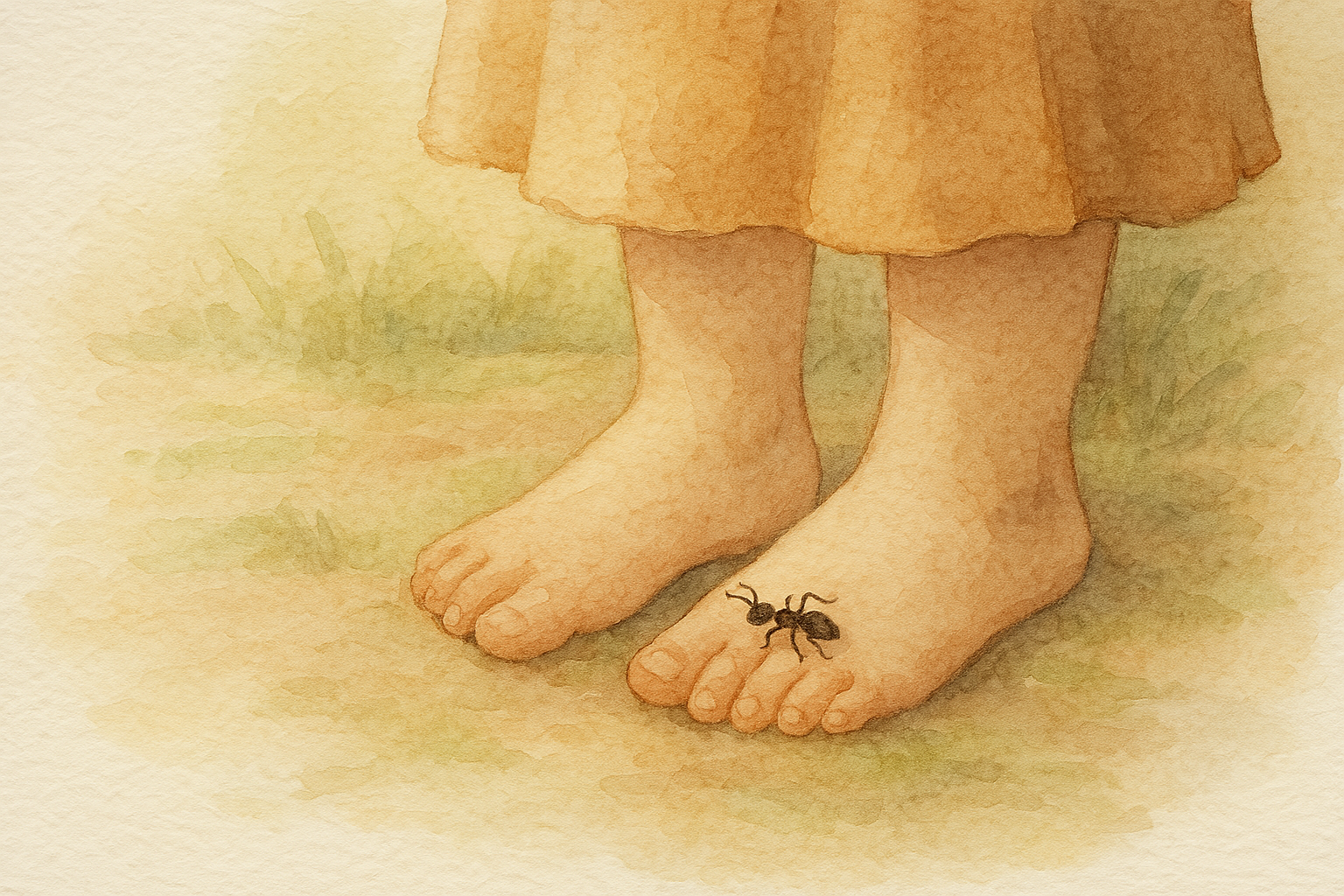 | (떠날 때 발등에/개미가 올랐길래/걸음 멈추고) 8-1(11)번 씬: 소녀의 발등에 개미가 꼬물거리며 기어간다. |