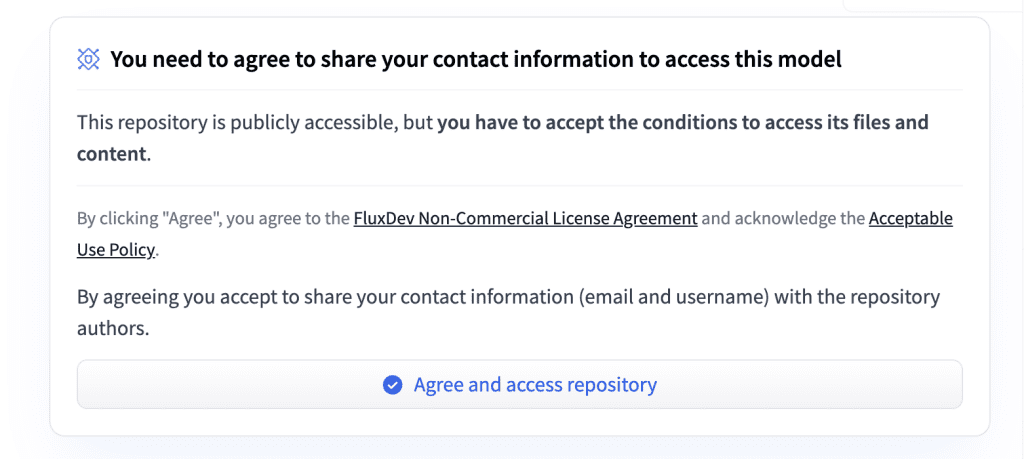 먼저 Flux.1 Redux Dev 모델 페이지를 방문하여 라이선스에 동의하셔야합니다. 아래와 [Agree and access repository]버튼을 누르면 됩니다.